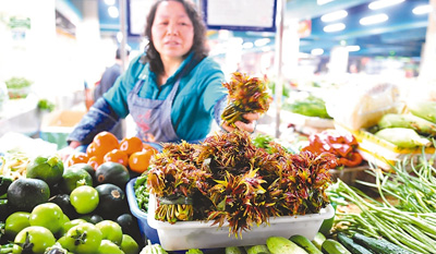 “吃新鮮”“吃綠色”正成為一種餐桌消費(fèi)“新食尚”。圖為近日在湖北宜昌,香椿芽等春季時(shí)令蔬菜上市后大受歡迎。