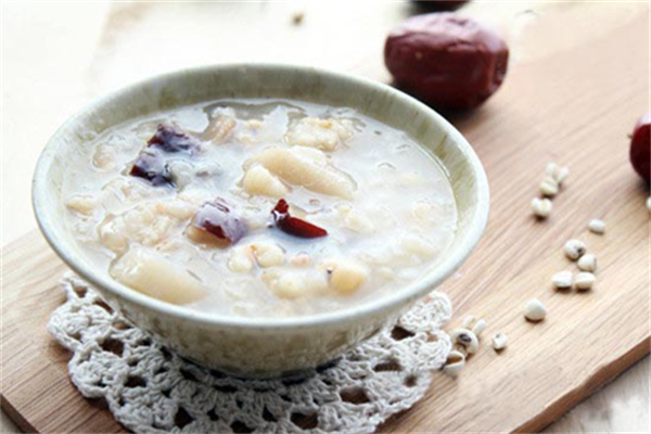 點(diǎn)評(píng):春季雨水豐沛,人體內(nèi)濕氣加重,薏米有利于人體內(nèi)濕氣排出,促進(jìn)體內(nèi)血液和水分的新陳代謝,并可幫助排便。山藥和薏米都有美白的功效,愛美的女士們不妨經(jīng)常食用。
