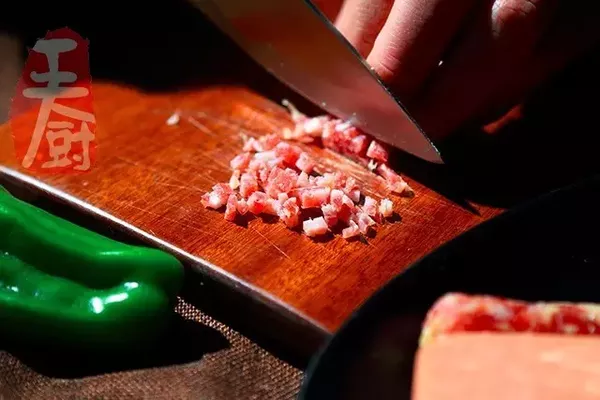 4、臘腸切成小丁。
