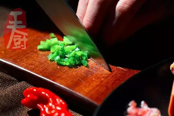 5、青椒切成小丁。