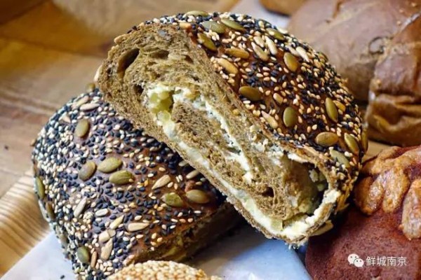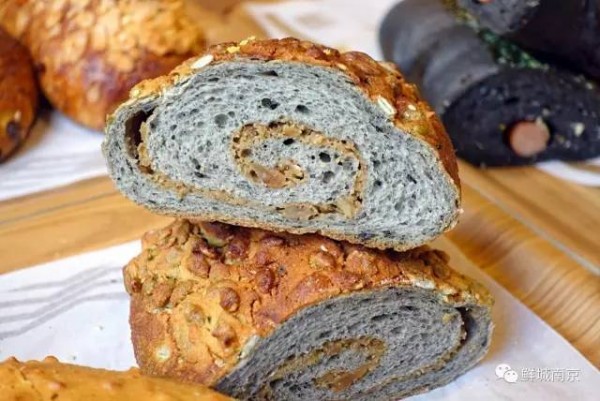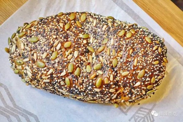 被奶酥裹著的南瓜子讓我這個不愛吃瓜子的人都無法拒絕。面包體揉入黑芝麻,餡料里夾入核桃奶酥,這種甜甜的堅果香氣在嘴巴里可以回味好久!