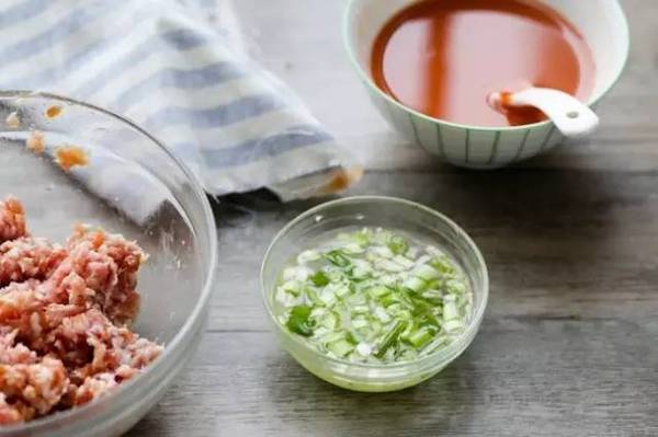 1、將碎豬肉、玉米淀粉、鹽、醬油、芝麻油、切碎的洋蔥、蒜末、生姜、溫水倒入一個(gè)碗中攪拌。