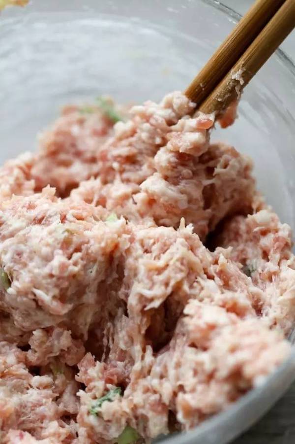 2、攪拌均勻,直到碎豬肉充分吸收水和淀粉后即可,約3分鐘。