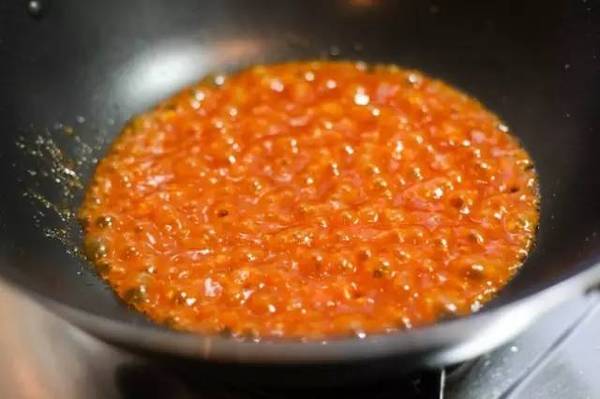 5、將酸甜醬所需材料混合好后,倒入食鍋中,煮沸。