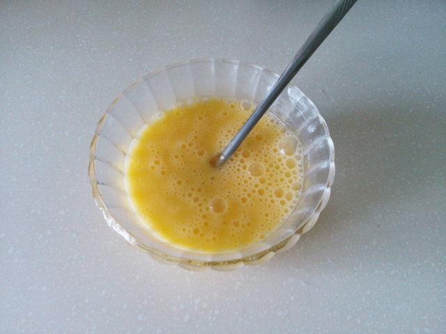 3. 將雞蛋打入碗中,蛋液打散備用。