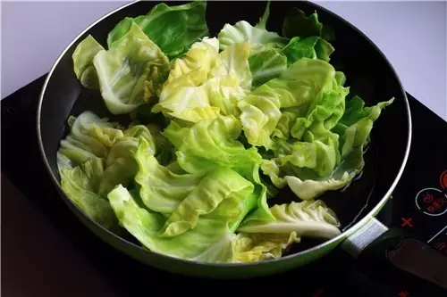 2、鍋內(nèi)燒開水,放入白菜氽燙約1分鐘。