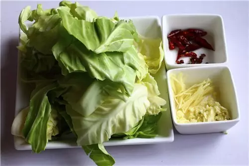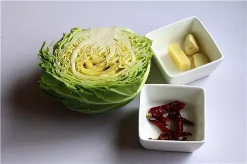 圓白菜1顆 干辣椒6個 大蒜2瓣 鮮姜10