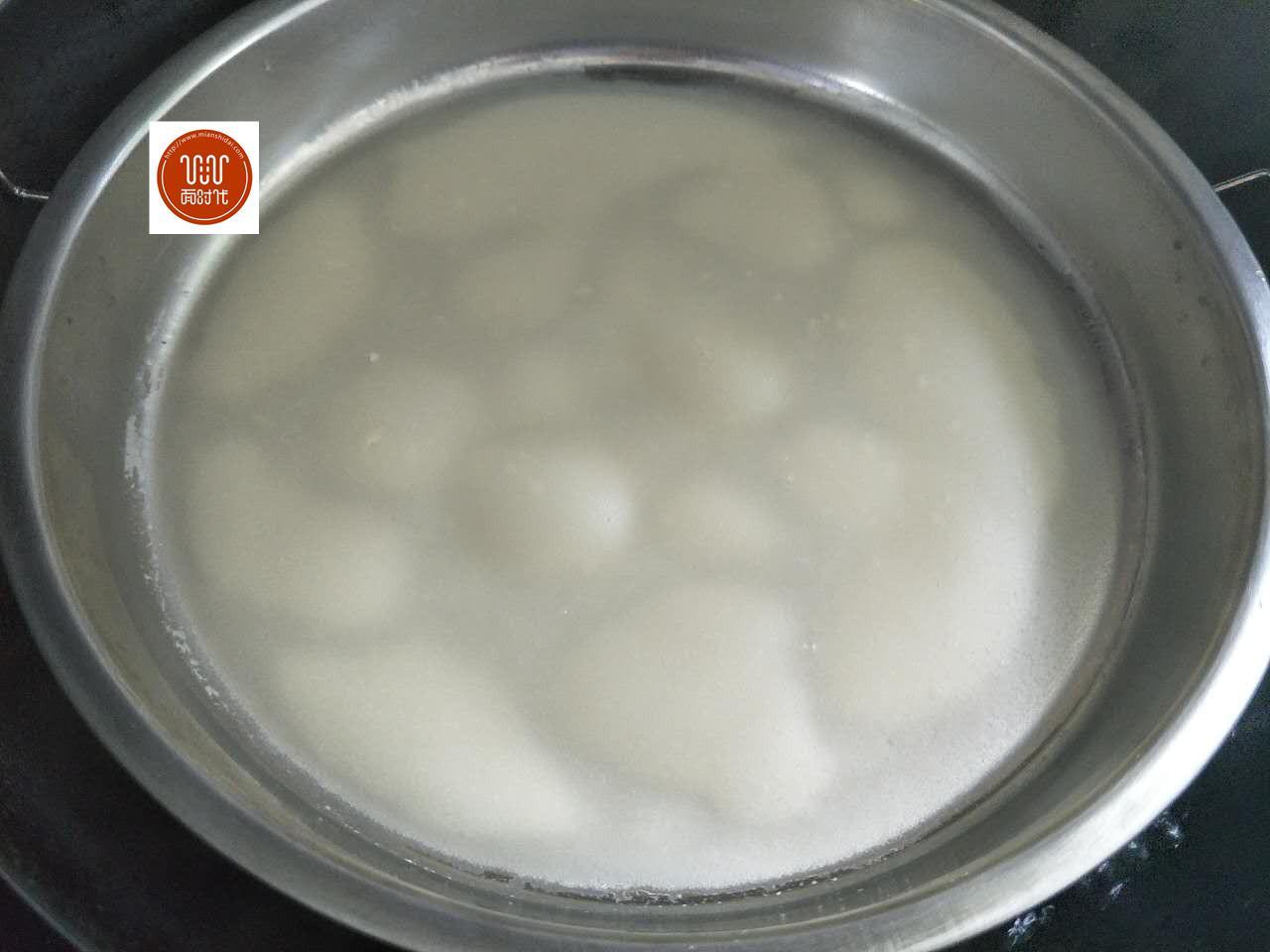 7、大鍋燒開水,把鑼放鍋中飄在水上。