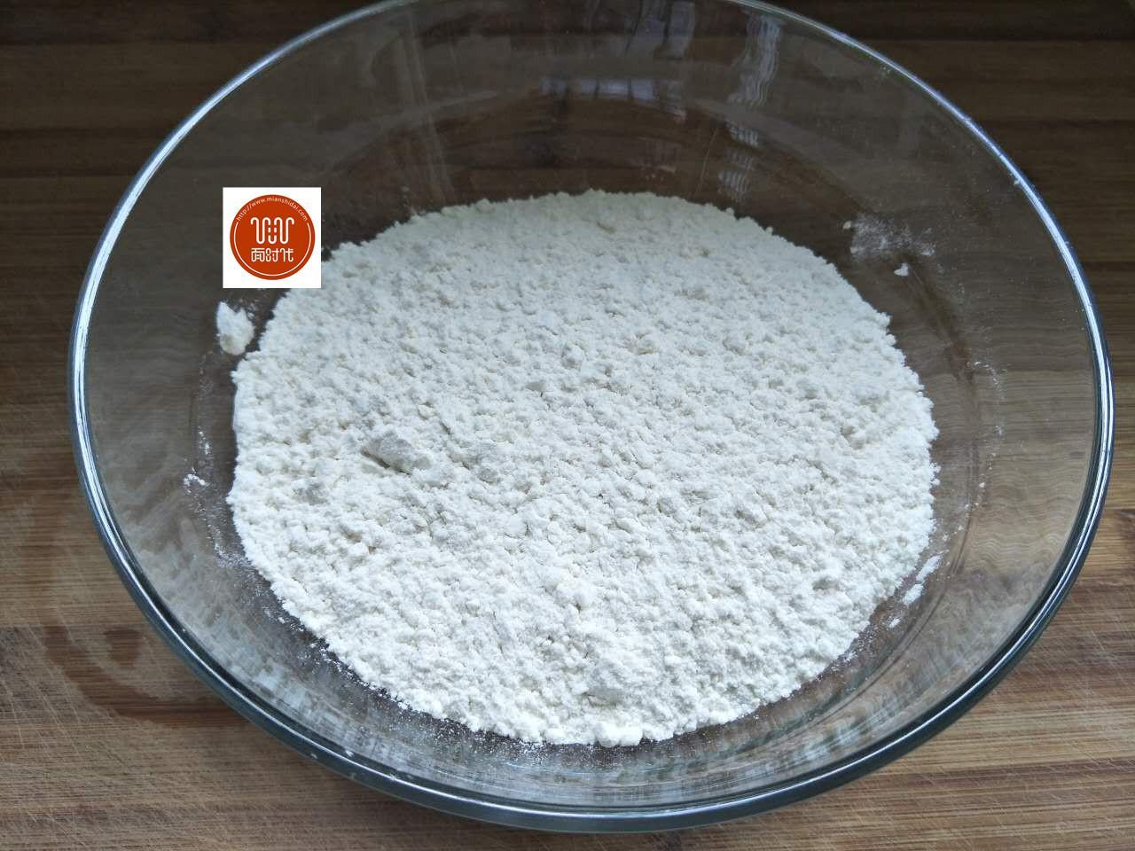 2、 加清水,邊加邊用筷子攪拌,攪拌成特別稀的面糊,用勺子舀著呈流水狀即可,面糊調(diào)的越稀越容易做成涼皮。