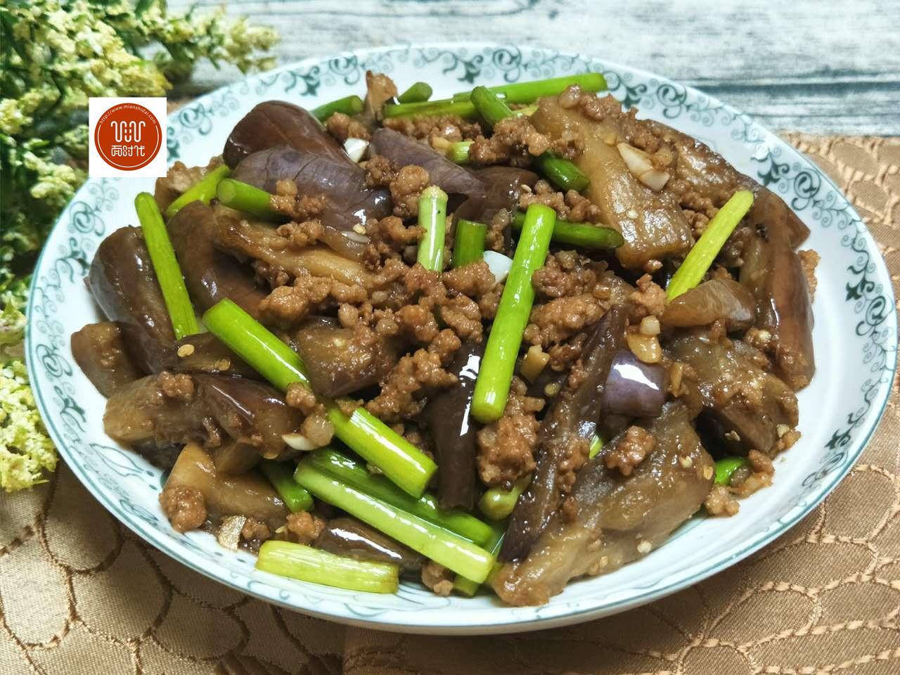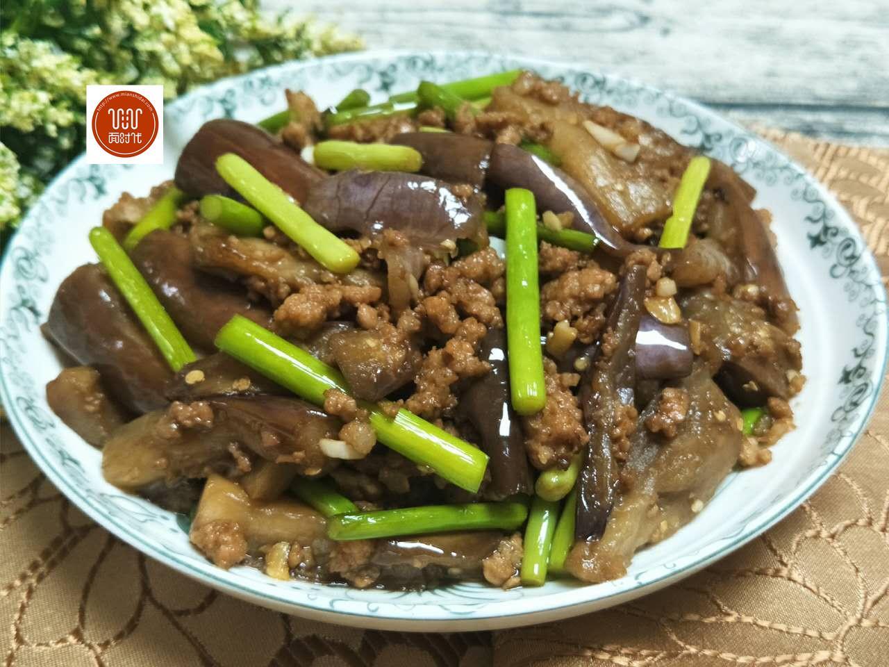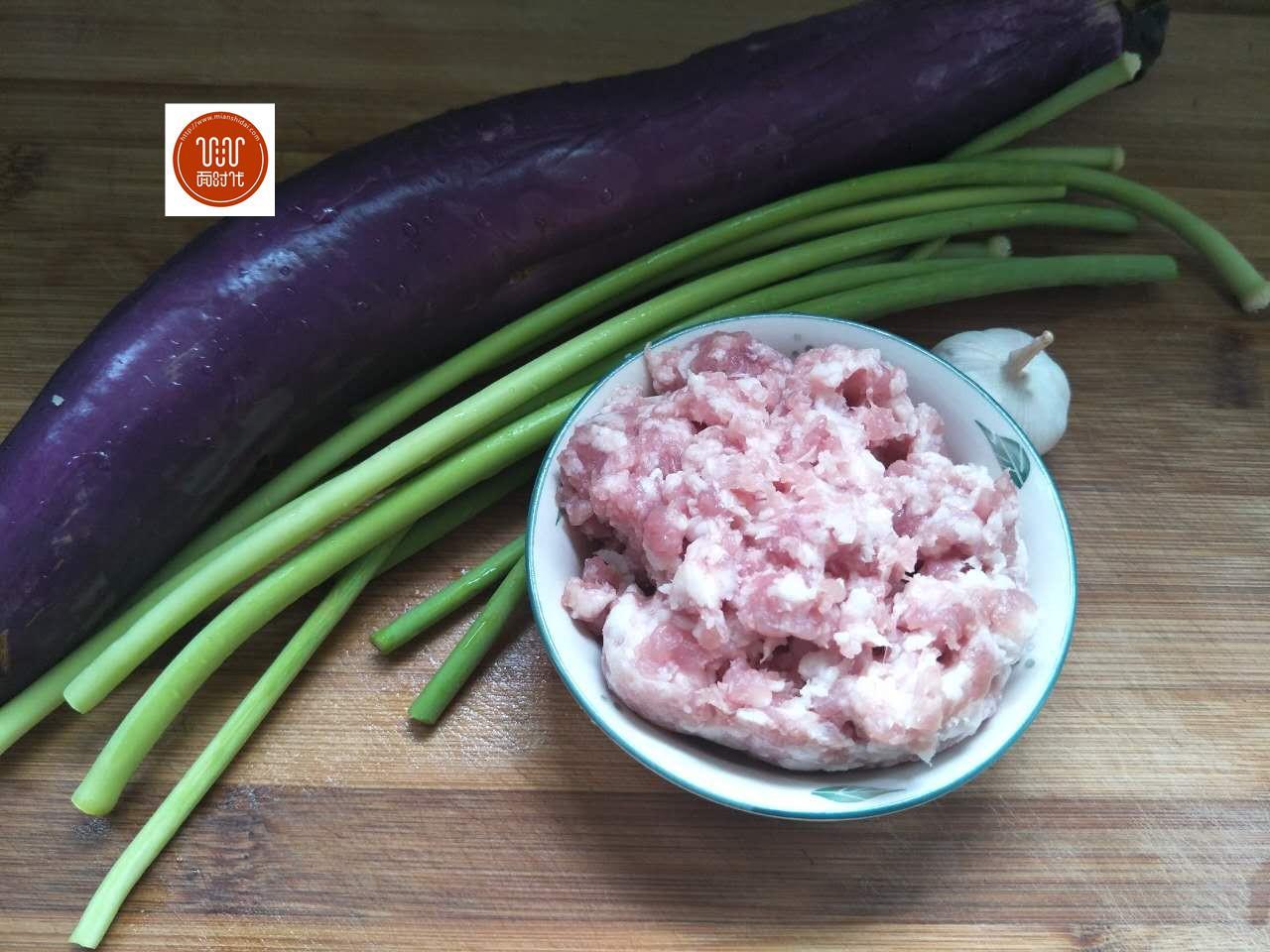 食材:茄子1根、肉餡150克,蒜薹幾根,油少量,鹽1小勺,醬油1勺,蒜瓣幾粒。