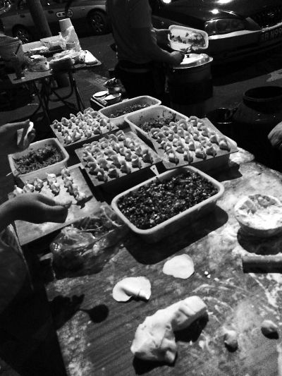 搟面皮、和餡兒、包餃子、下鍋煮……全在露天進(jìn)行。