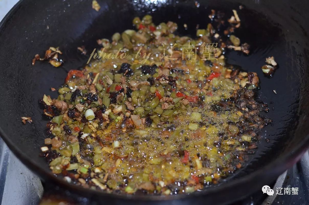配料:蔥姜蒜炒好的肉末酸豆角(可以分解成為肉末和酸豆角,或者用酸菜)