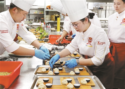 我市烹飪協(xié)會(huì)派出5位國家級(jí)烹飪大師,現(xiàn)場制作徐州彭祖養(yǎng)生宴,展示了“羊方藏魚”“彭城魚丸”“霸王別姬”“糖醋黃河鯉魚”“拔絲楂糕”等20余道名菜,備受臺(tái)灣同胞的贊譽(yù)。他們紛紛表示,徐州的美食不僅好吃,養(yǎng)生還有故事,令人驚嘆。
