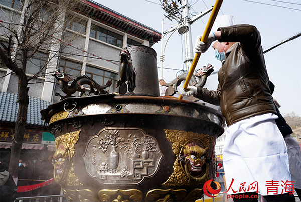 直徑 2 米、高 2.8 米的巨型暖鍋。人民網(wǎng) 顧斐菲攝