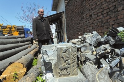 鄭州千年古村被拆遷 王德魁故居被拆后,后人王白齡將一些房子構(gòu)件保護起來 圖片來源:京華時報