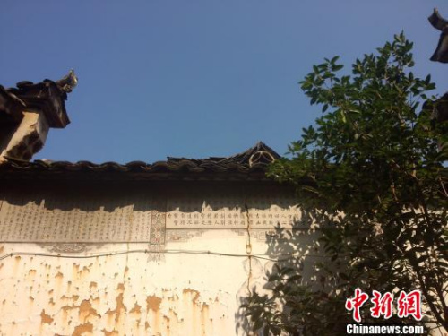 深山古村落轉(zhuǎn)身熱鬧“畫家村” 每幢老屋的院墻上都有毛筆書寫的古訓 中新網(wǎng)胡豐盛 攝