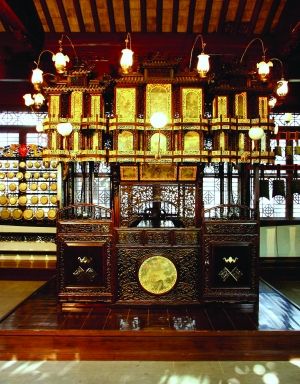 據(jù)中國昆曲博物館的工作人員介紹,此次展出的“寶和堂”堂名燈擔(dān),是清末有名的昆曲班子“寶和堂”的珍藏,上世紀(jì)80年代時,由“寶和堂”的后人捐贈給中國昆曲博物館,極有可能是現(xiàn)在僅存的一座堂名擔(dān),非常珍貴。