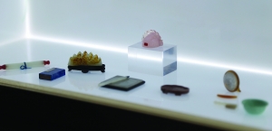 用墨玉、水晶、綠松石、瑪瑙等制成的34套昆曲暗戲,雅致小巧。