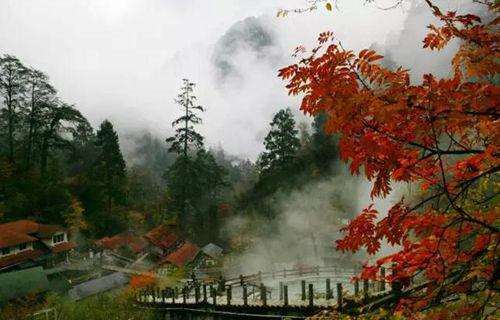 泡在池子里,偶爾張開眼,云霧籠罩的冰川雪山,那么近、那么遠……再看看四周,山谷里已經(jīng)層林盡染,紅的、黃的、綠的、白的……相織相間,完全就是一幅上帝才能繪制的完美畫卷。而到落雪的時候,就更美了——