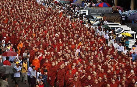 緬甸是宗教意識很濃的國家。在緬甸的街頭巷尾,隨時隨地都可以看到身披袈紗、手持黑傘的僧侶,全國僧侶有10幾萬,僅仰光、曼德勒的和尚就有2萬多人,平均300人中便有一個是和尚。