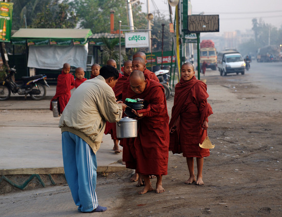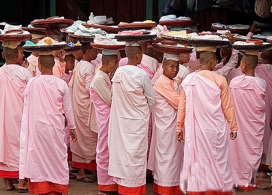由于緬甸人將禮佛作為生命中最重大的事,幾乎家家都有親人出家做過僧人,所以信徒們都樂于奉獻(xiàn)布施給和尚。