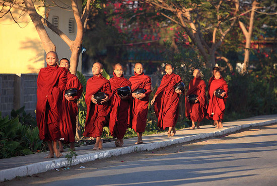 不過,緬甸女子一旦出家做了尼姑則終生不能還俗,必須一輩子伺候佛祖,這和婦女在緬甸的社會地位比較低有關(guān)。