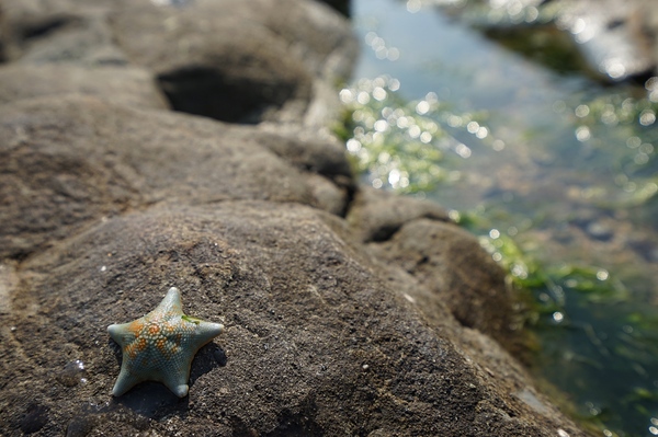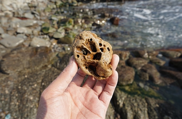 我下到礁石上,最先看到的是一些被海水沖刷過的瘦透漏的石頭,很有型,放在魚缸里一定很漂亮。