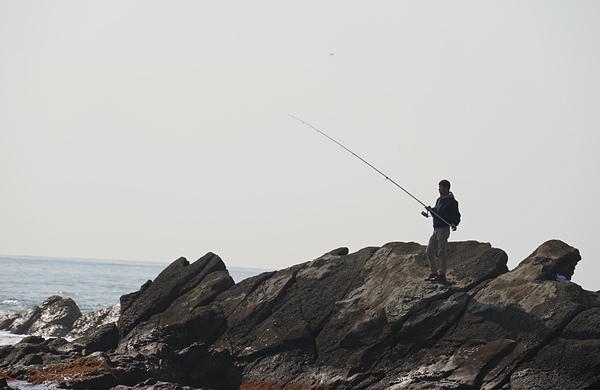 海邊有釣魚的,看了一會兒,上鉤很快,但釣魚的人只是要大個的,釣上的小魚會再丟到海里。
