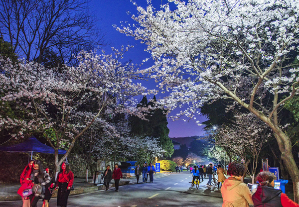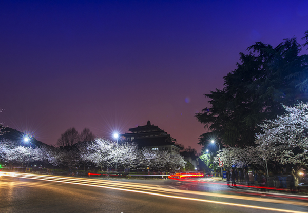 櫻花之美聞名全國的武漢大學(xué)成了賞櫻勝地。成千上萬游客慕名而至,留連觀賞,如醉如癡,大有“三月賞櫻,唯有武大”的意趣。人們大多是在白天賞櫻的,但是為了躲避櫻花大道白天擁擠的人流,錯峰晚上賞櫻是不錯的選擇。其實,晚上賞櫻可以說是別有一番風(fēng)情。