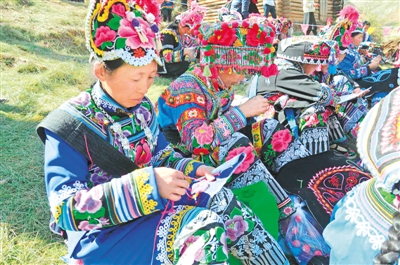 近年來,云南在國際舞臺上精彩不斷。2016年10月“七彩云南(國際)民族賽裝文化節(jié)楚雄彝族特色服裝展示暨馬艷麗高級服裝定制2017作品發(fā)布會”在北京精彩亮相,彝繡進一步走向世界。歷屆“南博會”上,彝繡現(xiàn)場展演都讓游客流連,以彝族服飾、民族手工藝品為主的具有便攜性、實用性和紀念性的旅游商品非常受歡迎。近年來,楚雄州不斷深入挖掘民族文化,發(fā)展彝繡產(chǎn)業(yè),為當?shù)匕傩彰撠氉隽藢嵤,現(xiàn)在不僅直苴村村民不必再外出打工,其他村里的婦女也坐在家里繡花賺錢了。今年商洽會上,彝繡依舊是重頭戲。