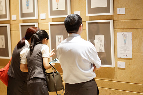 成都香格里拉大酒店與五彩基金將學(xué)生們的繪畫作品創(chuàng)意制作為保溫杯和手機充電寶,在酒店官方微信商城預(yù)售。所有藝術(shù)衍生禮品的售賣盈利都將捐給五彩基金,支持“藝術(shù)助殘計劃”。此次藝術(shù)展將在酒店一樓公共區(qū)域持續(xù)一個月。