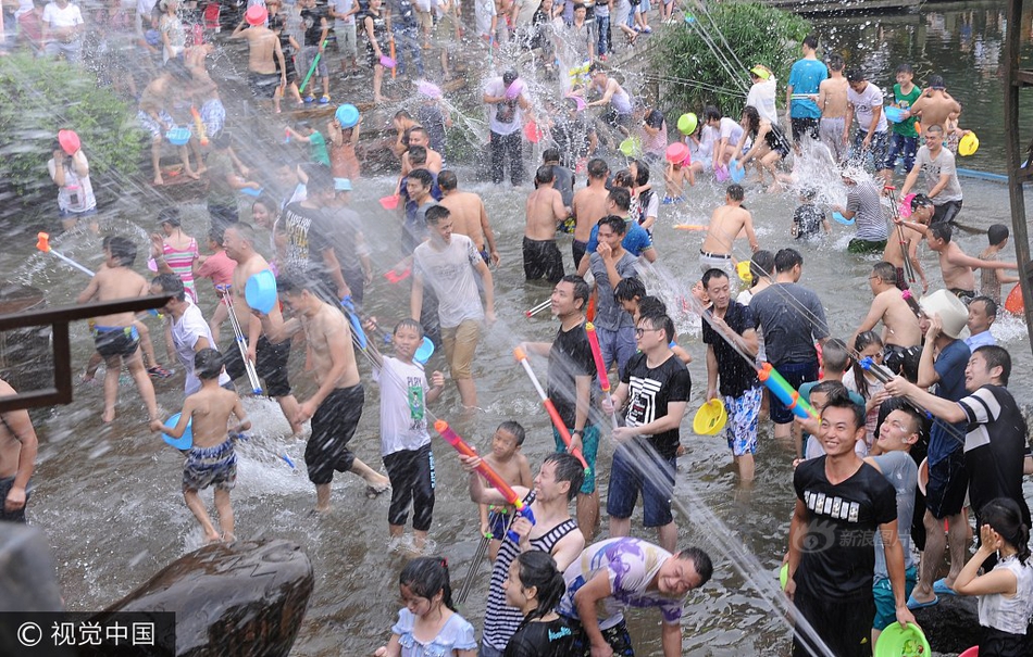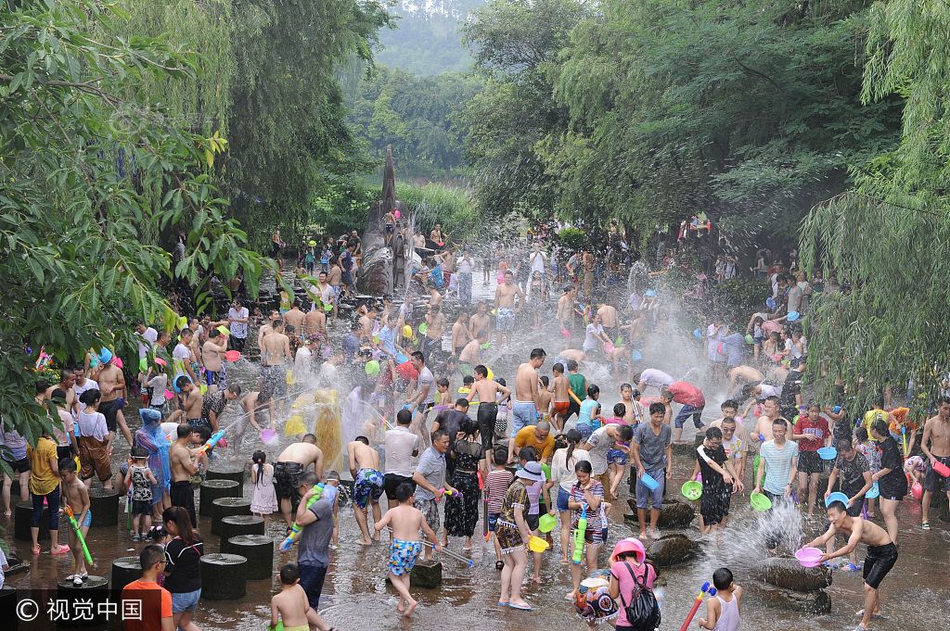 2017年7月2日,四川省成都市,進(jìn)入夏天,古鎮(zhèn)黃龍溪迎來(lái)打水仗的季節(jié)。供圖:視覺(jué)中國(guó)