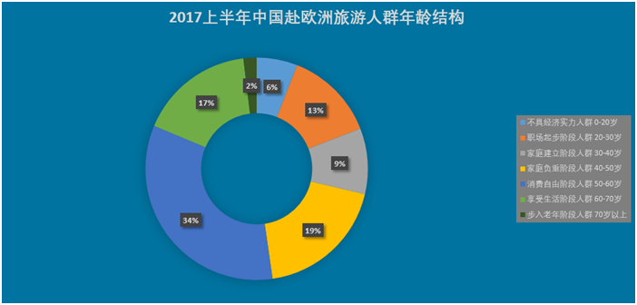 赴歐洲旅游50歲以上游客占比超50%,表明“有錢有閑”一族主導(dǎo)歐洲游市場(chǎng)。30-50歲游客(占比19%)多為家庭出游,產(chǎn)品與服務(wù)是他們的關(guān)注焦點(diǎn)。20-30歲游客(占比13%)屬于市場(chǎng)潛力人群。