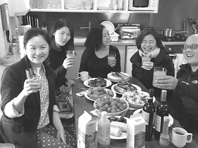 一群中國(guó)游客在位于英國(guó)康沃爾海濱的民宿享用晚餐。林衛(wèi)光攝
