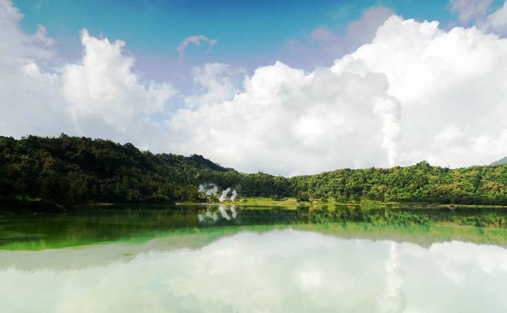 五色湖是一座硫磺湖,因?yàn)殛?yáng)光的照射,不同時(shí)間湖面會(huì)呈現(xiàn)不同的顏色,因而得名五色湖,有的人也叫它七彩湖?拷,可以聞到淡淡的硫磺味。