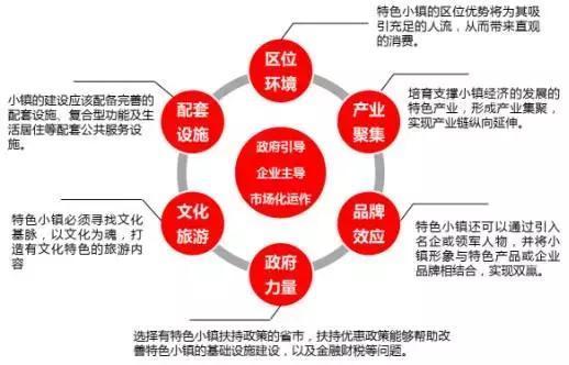 一個(gè)成功的特色小鎮(zhèn),離不開區(qū)位環(huán)境、產(chǎn)業(yè)聚集、設(shè)施配套、文化旅游、品牌效應(yīng)、政府力量多方面因素,其中區(qū)位決定吸引力、產(chǎn)業(yè)帶動(dòng)人口、配套完善區(qū)域功能,而文化、品牌利于形成產(chǎn)品特色,政府則是特色小鎮(zhèn)未來發(fā)展的導(dǎo)向和有力支持者。
