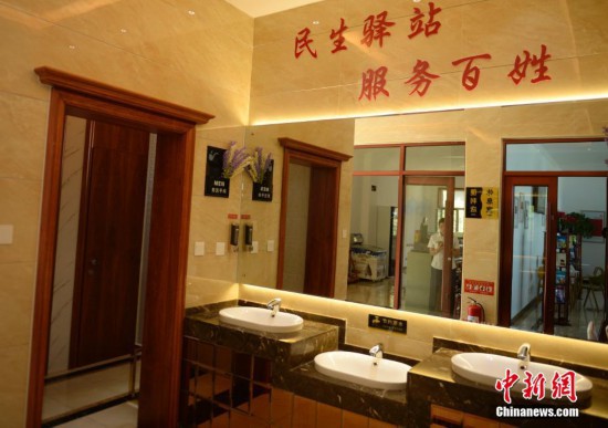 8月29日,衛(wèi)生間驛站內(nèi)部區(qū)域,并配有專人維護(hù)。近日,呼和浩特市內(nèi)主街路邊出現(xiàn)一個(gè)假山造型“青城驛站”。該景觀驛站內(nèi)約130平方米,主要功能為公共免費(fèi)衛(wèi)生間,配有休息室、小超市等功能區(qū)。此外,假山還設(shè)計(jì)有瀑布、水池和涼亭。中新社記者 劉文華 攝