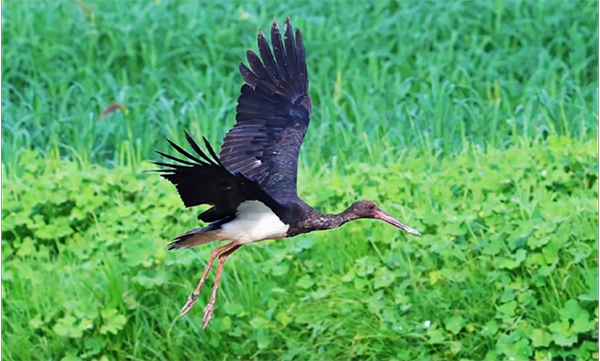黑鸛擺動(dòng)寬大的羽翼振翅升空。李萌虎攝