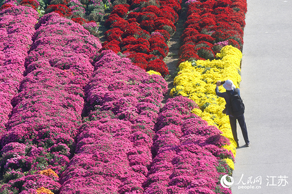 人民網(wǎng)泰州10月20日電 (記者王丹丹)時下,江蘇泰州興化市千垛景區(qū)菊花進入盛花期,一垛一垛顏色各異的菊花宛如被打翻的調色盤,又像是“漂”在水上的巨大花籃,環(huán)繞在星羅棋布的垛田間,吸引了眾多游客前來體驗魚米之鄉(xiāng)獨特的詩意秋日。