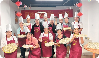 餃子志愿服務(wù)隊在萬景社區(qū)幸福廚房開展活動。