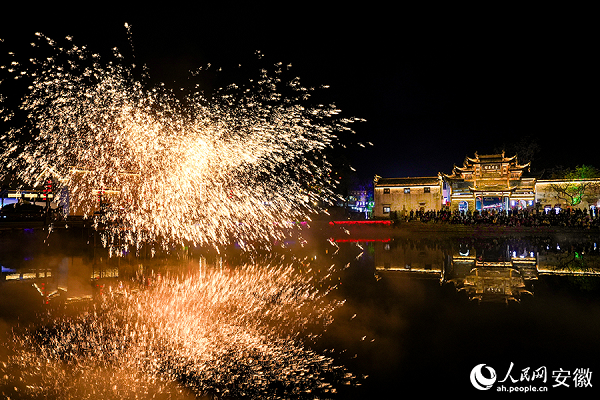 打鐵花表演。人民網(wǎng) 苗子健攝