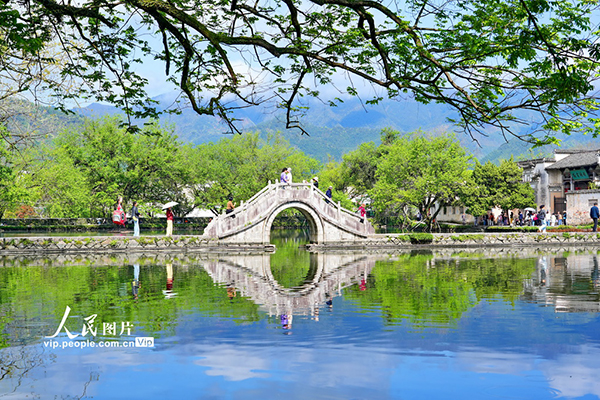 2026年4月10日,安徽省黃山市黟縣宏村景區(qū)春意盎然,吸引眾多游客前來(lái)踏青游玩。許家棟攝(人民圖片網(wǎng))