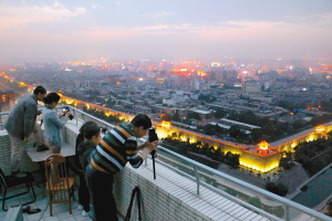 5日晚7時(shí)許,“老相機(jī)拍新西安”攝影活動(dòng)的愛好者來(lái)到東南城角附近一棟高層上,用手中的老相機(jī)記錄下古城夜幕降臨,華燈初上時(shí)的美景記者黃亞平實(shí)習(xí)生馬藝玄 秦喆 攝