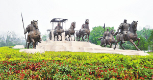 徐州漢文化景區(qū)集中國漢文化精粹于一體,其中的兵馬俑陣容宏大,惟妙惟肖,展示了當年漢代軍隊的威武雄壯;漢畫像石生動逼真,用繪畫和雕刻的藝術手法在石板上記錄了漢代的政治、經(jīng)濟、社會生活的方方面面。