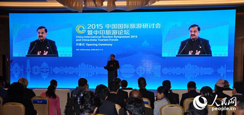 2015年中國國際旅游交易會重要活動之一的中印旅游論壇開幕,印度旅游部長馬赫希.夏爾馬致辭致辭。人民網(wǎng) 馮亞濤 攝