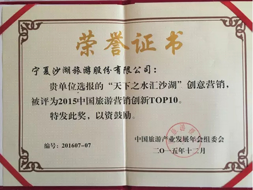 12月26日下午,第五屆中國(guó)旅游產(chǎn)業(yè)發(fā)展年會(huì)舉行年度發(fā)布,揭開了“2015中國(guó)旅游風(fēng)云榜”的神秘面紗。 由寧夏沙湖旅游股份有限公司選報(bào)的“天下之水匯沙湖”創(chuàng)意營(yíng)銷和六盤山旅游管理委員會(huì)選報(bào)的“六盤山雕塑群”兩個(gè)項(xiàng)目,登上了有中國(guó)旅游產(chǎn)業(yè)“奧斯卡獎(jiǎng)”之譽(yù)的中國(guó)旅游風(fēng)云榜,分別榮獲2015中國(guó)旅游營(yíng)銷創(chuàng)新TOP10和2015中國(guó)旅游優(yōu)質(zhì)創(chuàng)意建設(shè)項(xiàng)目TOP10。