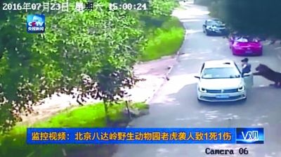 八達(dá)嶺野生動(dòng)物園老虎襲人事件監(jiān)控視頻的截屏。