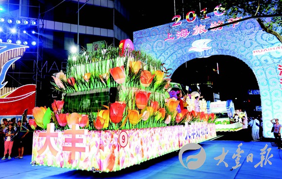 9月10日,2016年上海國際旅游節(jié)開幕。大豐花車和來自19個(gè)國家和地區(qū)的24輛花車、31支表演方隊(duì)一起亮相“上海灘”。我區(qū)作為江蘇唯一四度受邀的縣市(區(qū))參加活動(dòng),盡顯迷人風(fēng)情。王越 攝