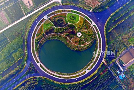 原標(biāo)題:山東濱州現(xiàn)神秘太極圖 花開絢爛碧水如鏡
