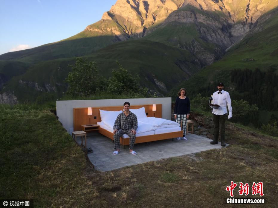 2016年9月21日訊,瑞士,Null Stern酒店打破了所有關(guān)于豪華酒店的刻板印象。在那里除了一張床和幾張床邊桌,什么都沒有。沒有門、沒有墻壁、沒有天花板——只是在你周圍有瑞士阿爾卑斯山的壯麗景色。酒店位于瑞士阿爾卑斯山海拔1970米的山脈上。這個房間的價格是每晚210美元。圖片來源:視覺中國